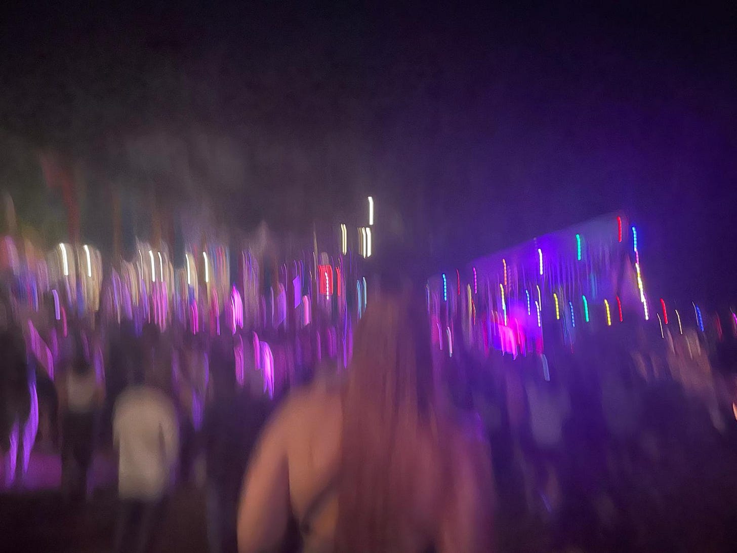 We zaten op een bankje ergens bij de eettentjes, het was al donker, en er kwamen de hele tijd mensen om een vuurtje vragen of een sigaret.
