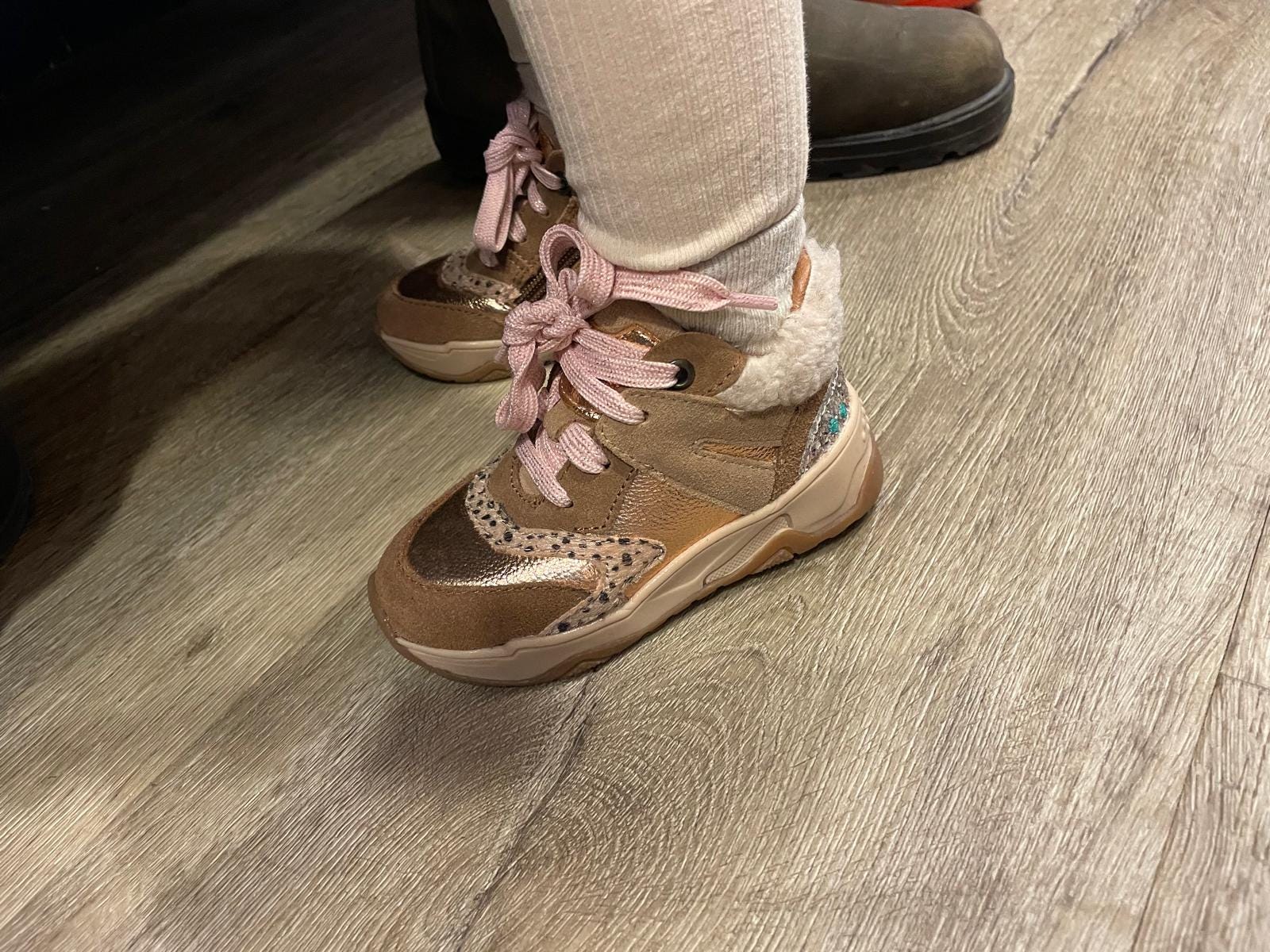 Roze, glitter, dierenprints, alle clichés komen voorbij. Mijn dochter kijkt verbaasd naar wat er nu weer aan haar voeten zit.