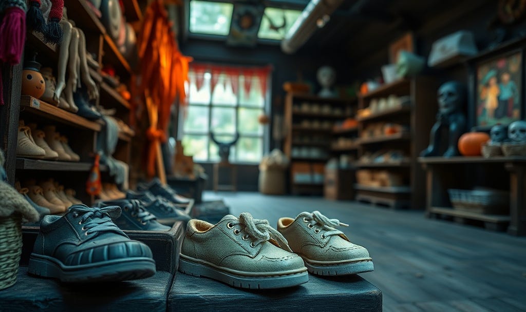 Ze leidt ons richting een hoek van de winkel. Het pad tussen manshoge schappen vol schoenen uit vervlogen tijden wordt steeds smaller. Het voelt alsof we worden opgeslokt. Wat is dit voor plek?